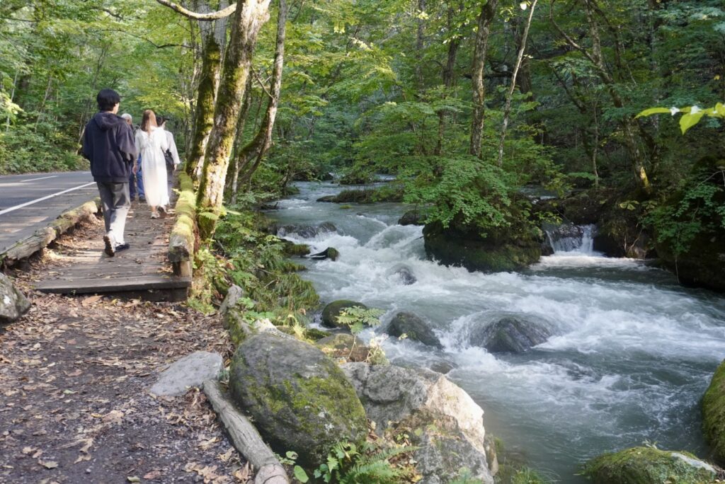 その後、奥入瀬渓流へ向かいました。クマ出没注意の看板をいくつも見ながら、夕暮れも近かったため、あまり深入りはせず、歩きながら自然を堪能しました。歩くのにはちょうどいい季節だったので、今度は滝まで見に行きたい。