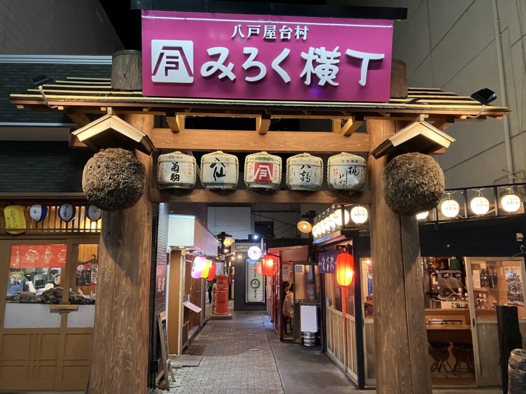 港町である八戸には横丁文化があり、屋台のような小さなお店が軒を連ねています。みろく横丁で、お店の人と話をしながら名物のせんべい汁や海鮮、お酒を楽しみました。