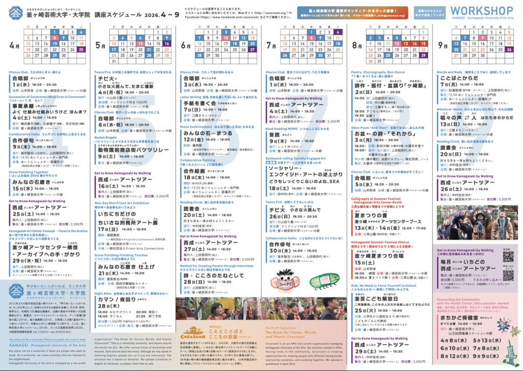参加費についてや、詳細などは「釜ヶ崎芸術大学」のページをご確認ください。